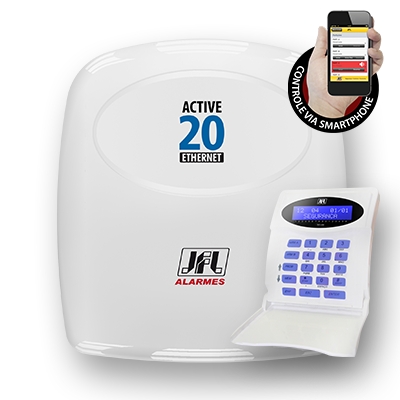Central de alarme monitorável até 22 zonas com módulo ethernet integrado e acesso via aplicativo celular.